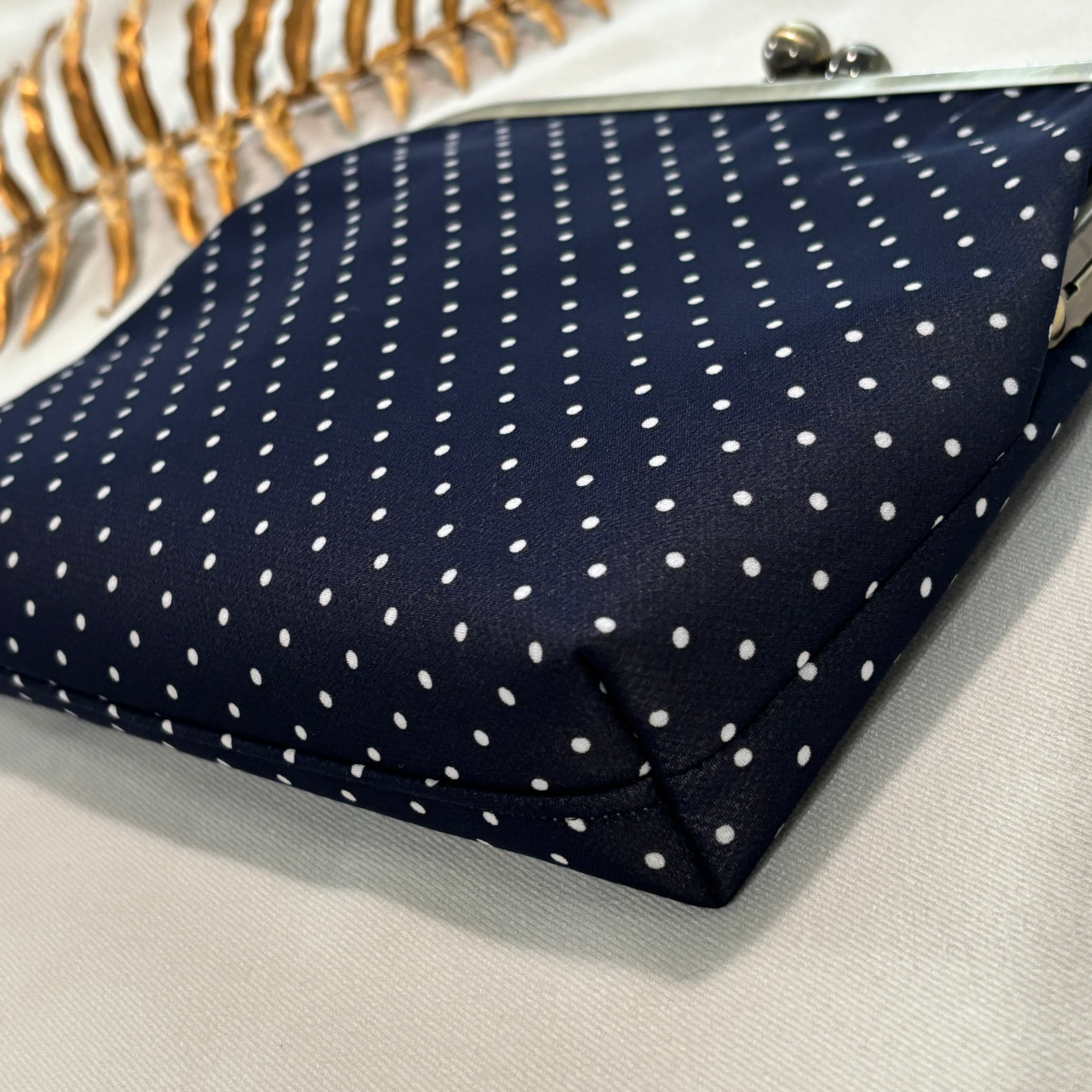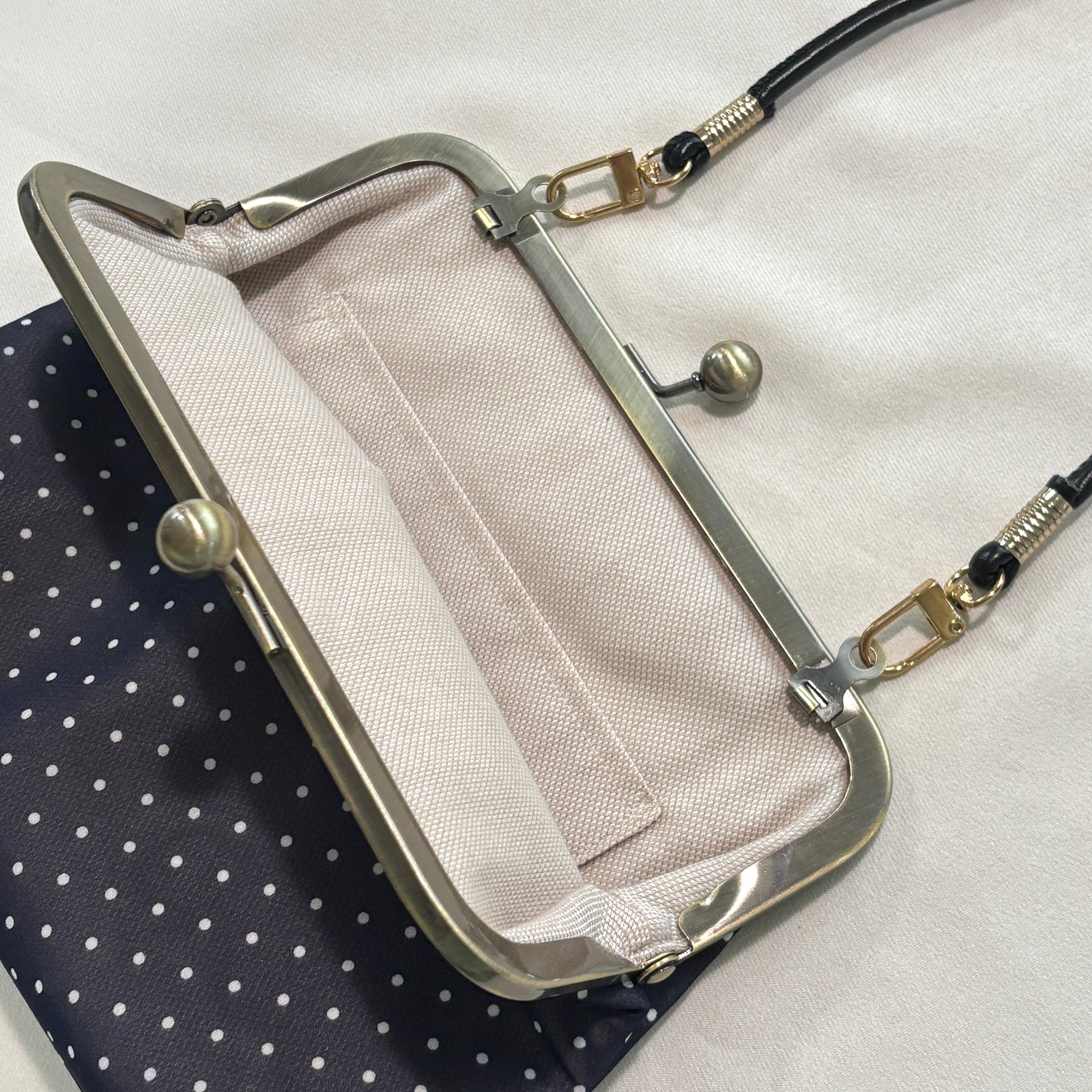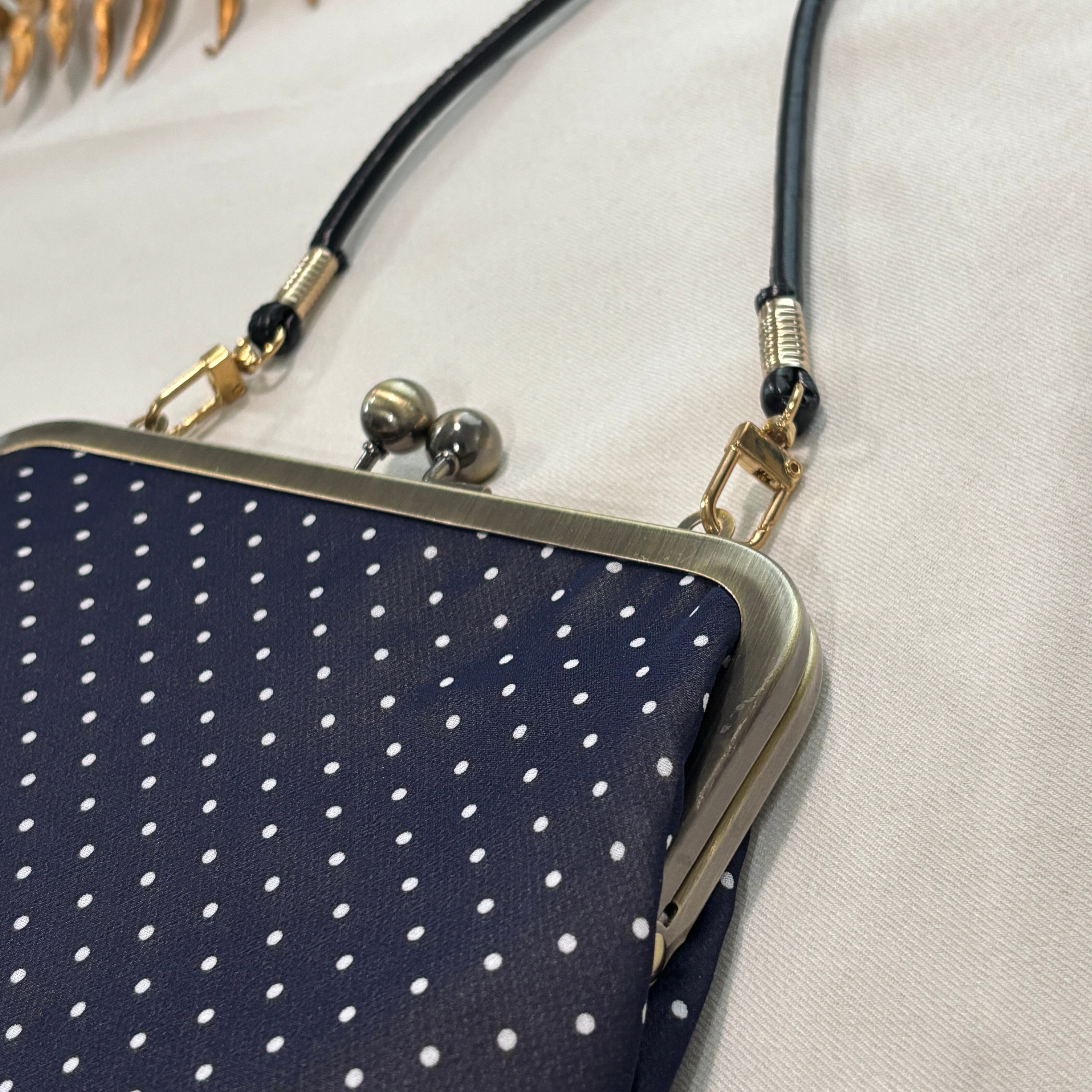 2WAYがま口ポーチ シアー素材×ドットネイビー