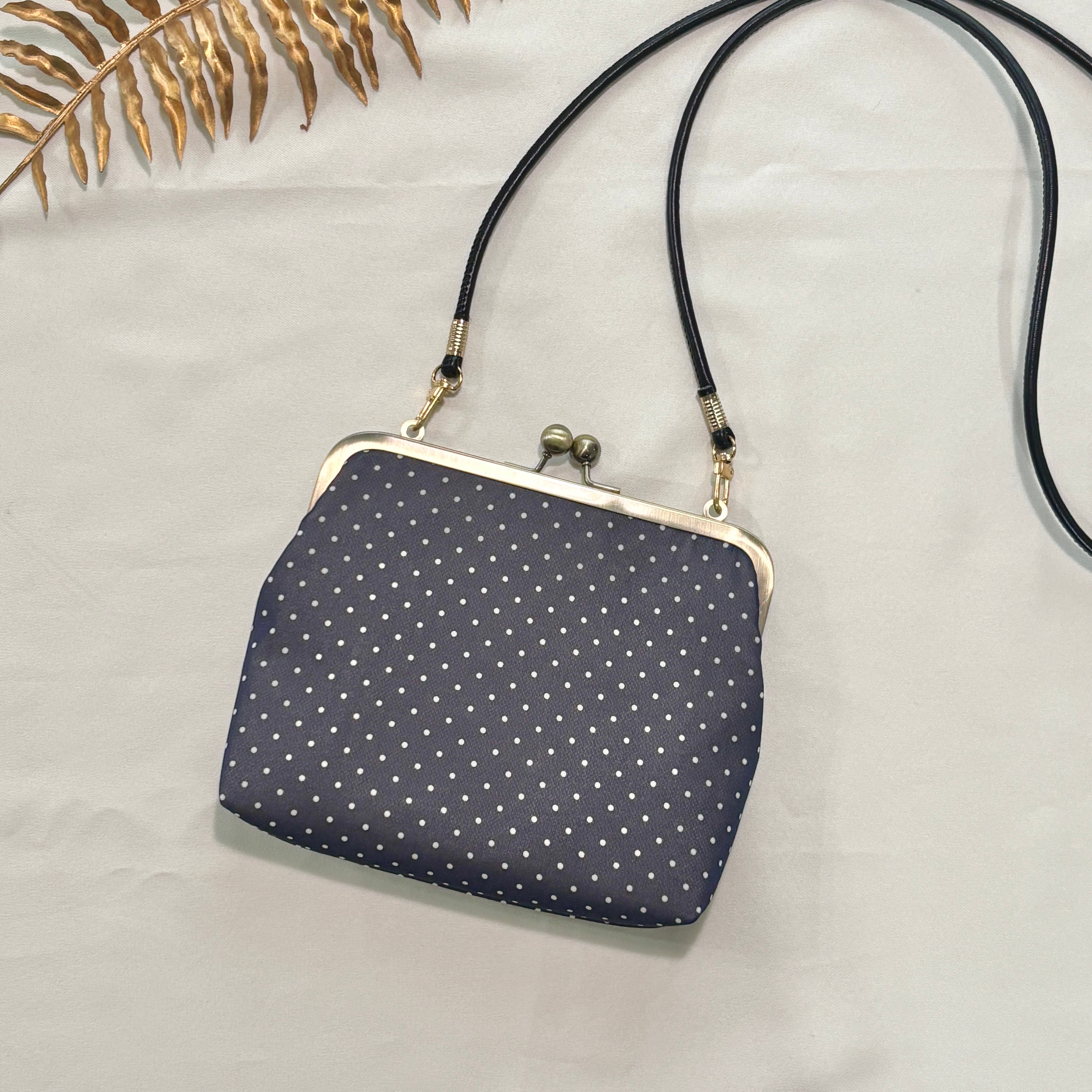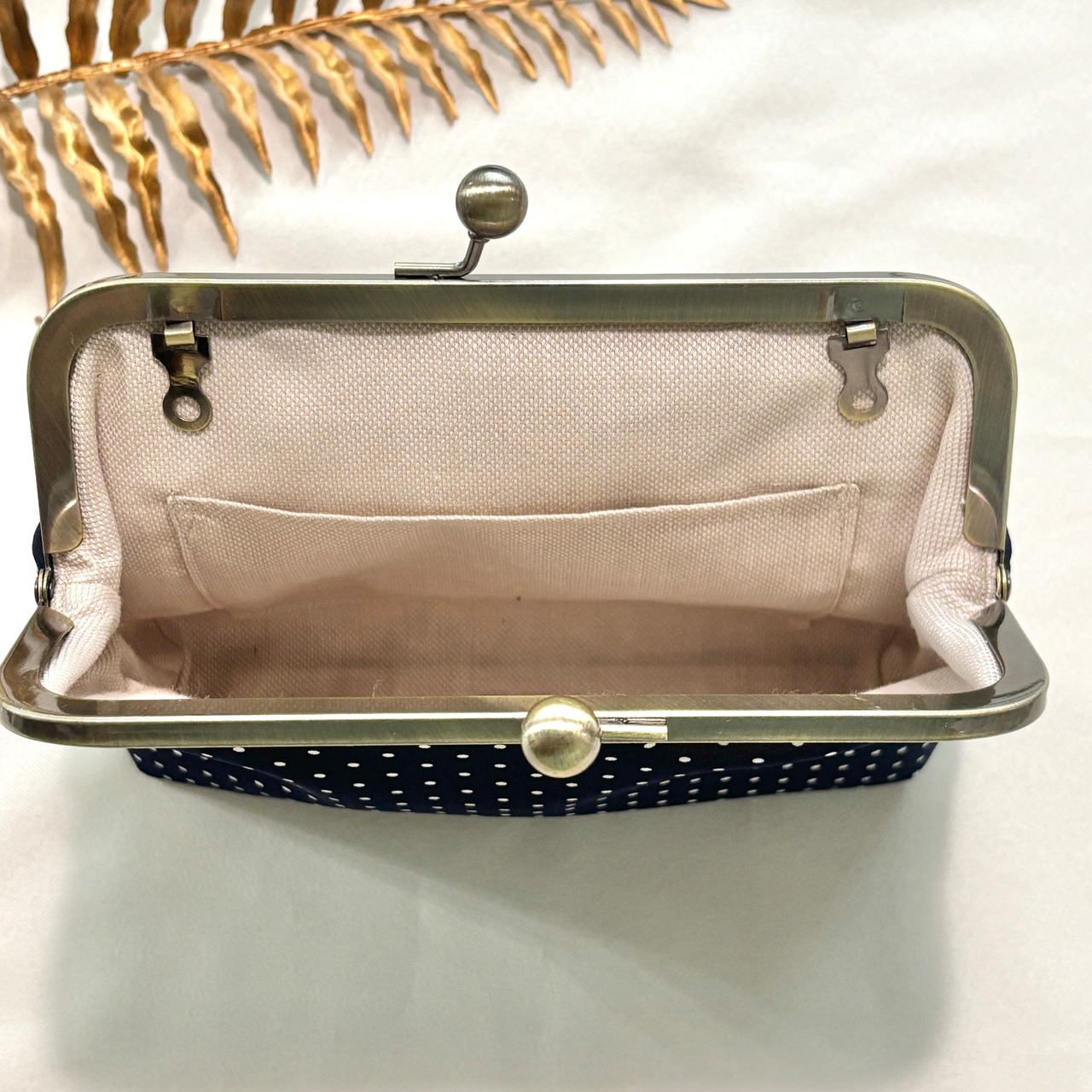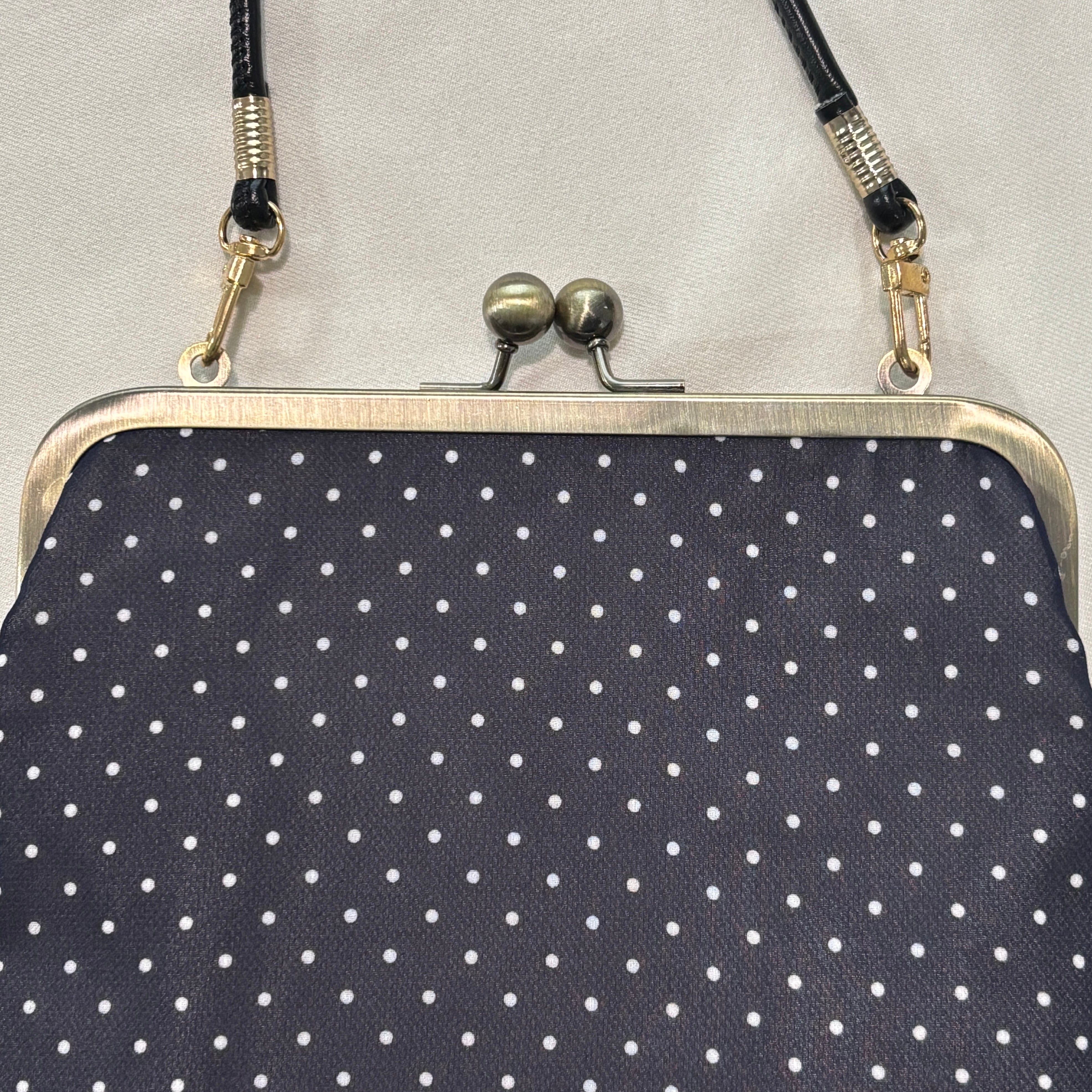 2WAYがま口ポーチ シアー素材×ドットネイビー