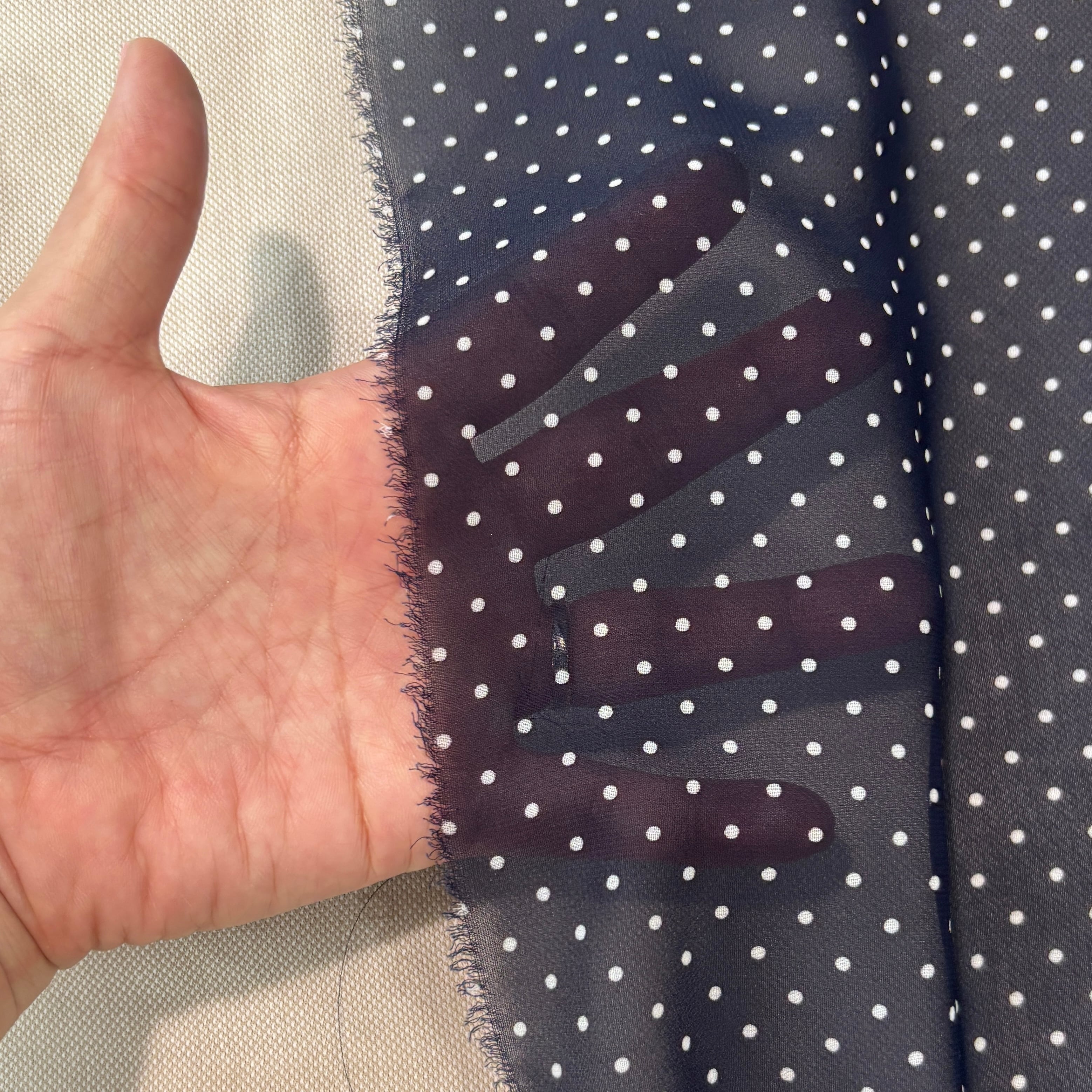 透け感のある生地に、細かいドット柄が可愛らしいアクセントを加えています。