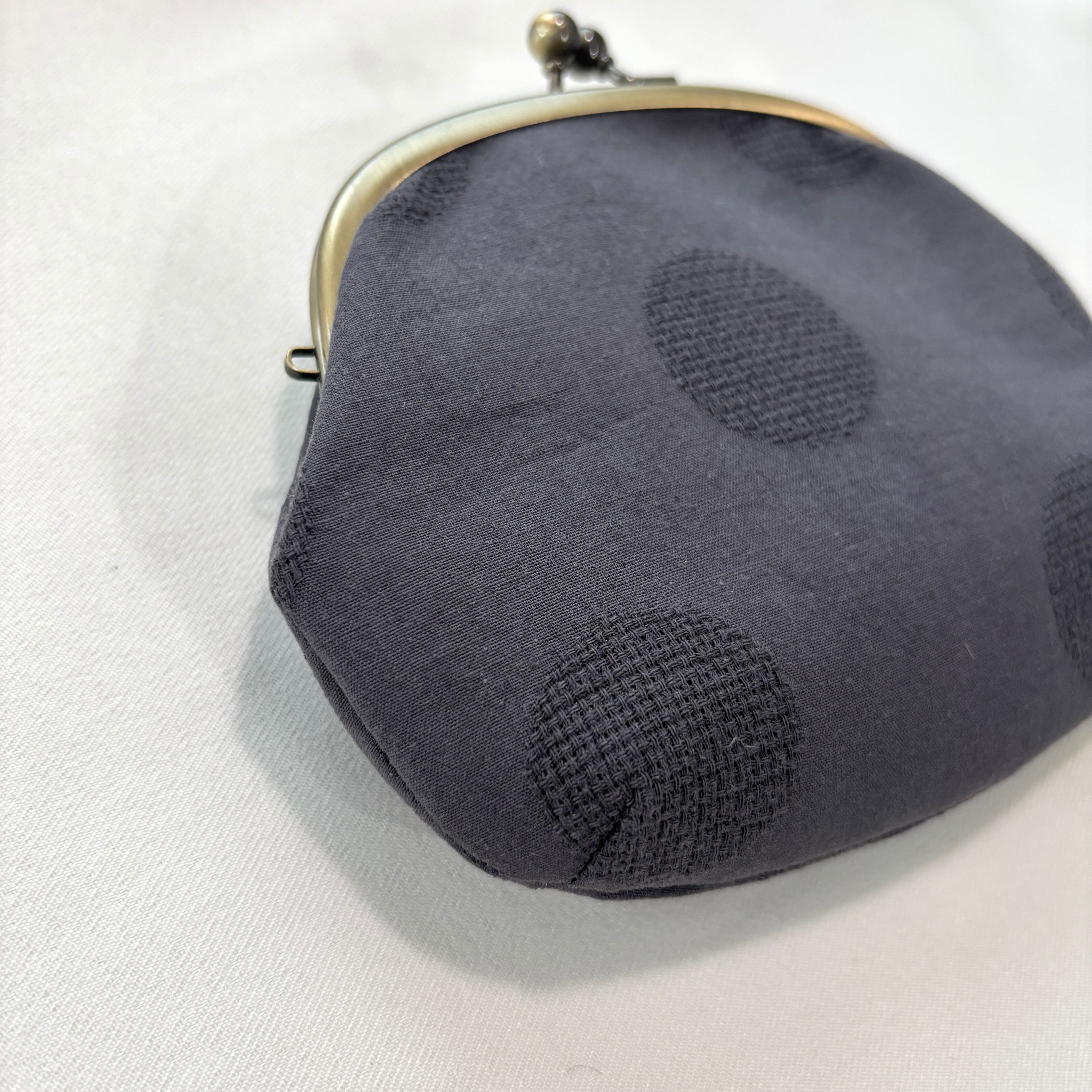 コットンリネンのがま口ポーチ ドット/グレー