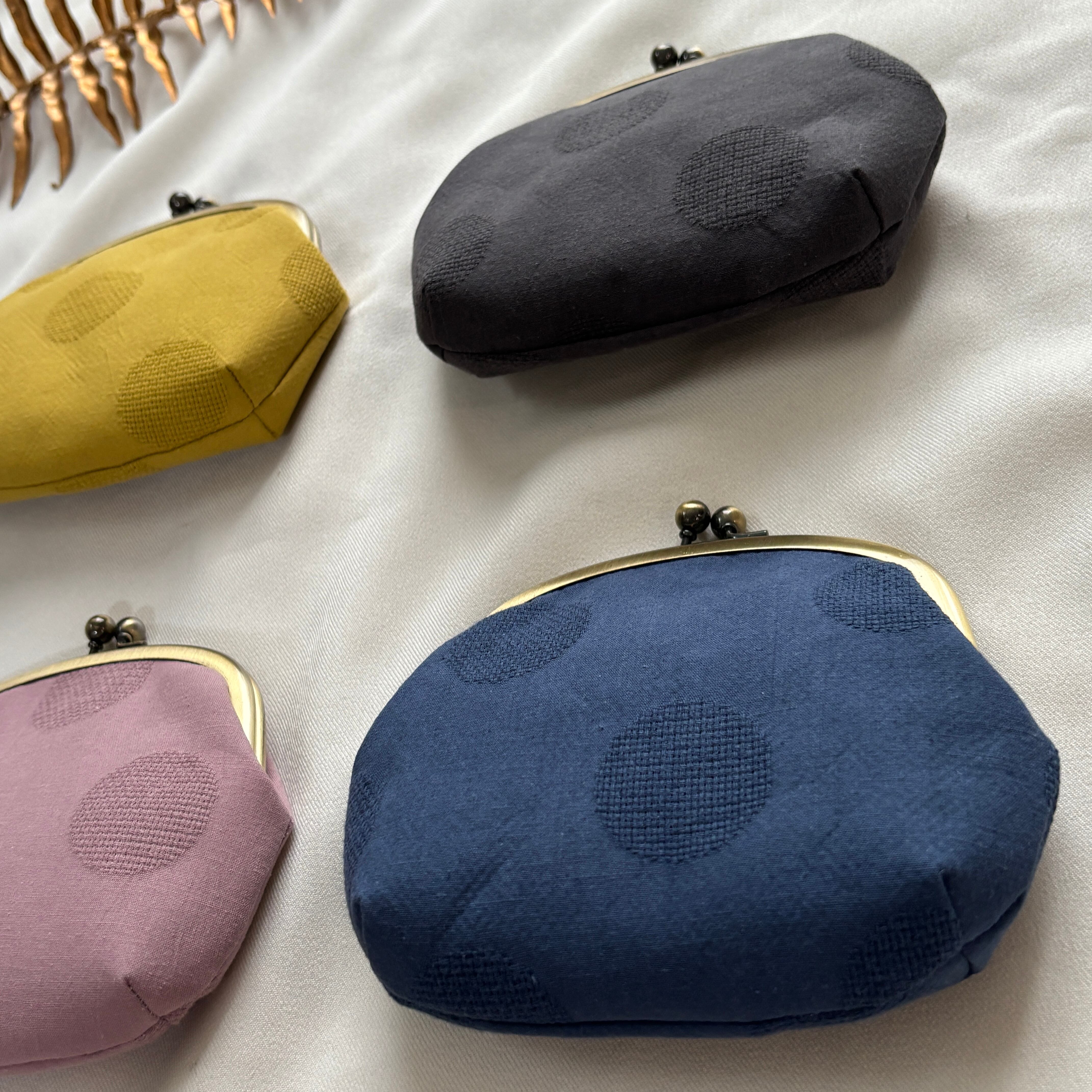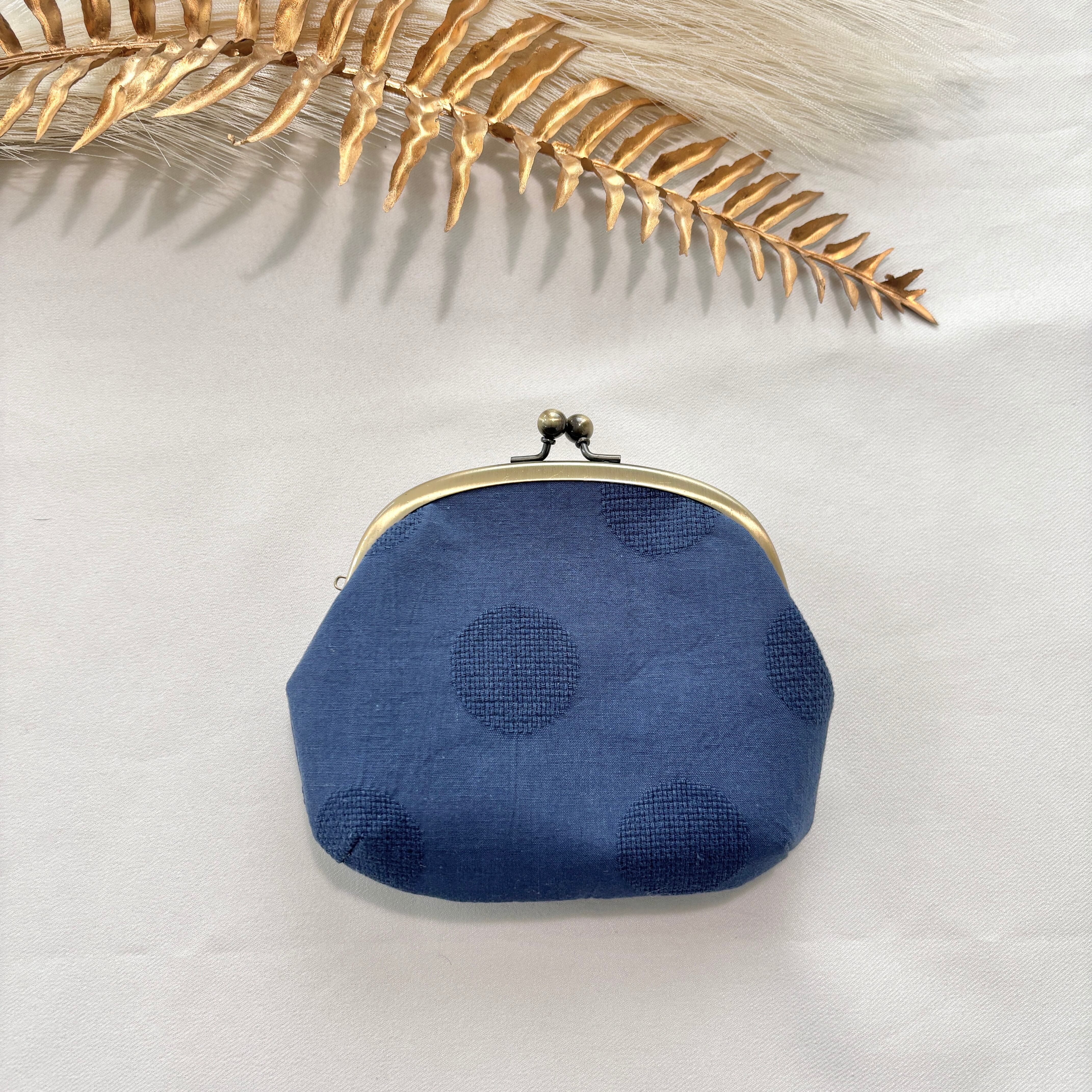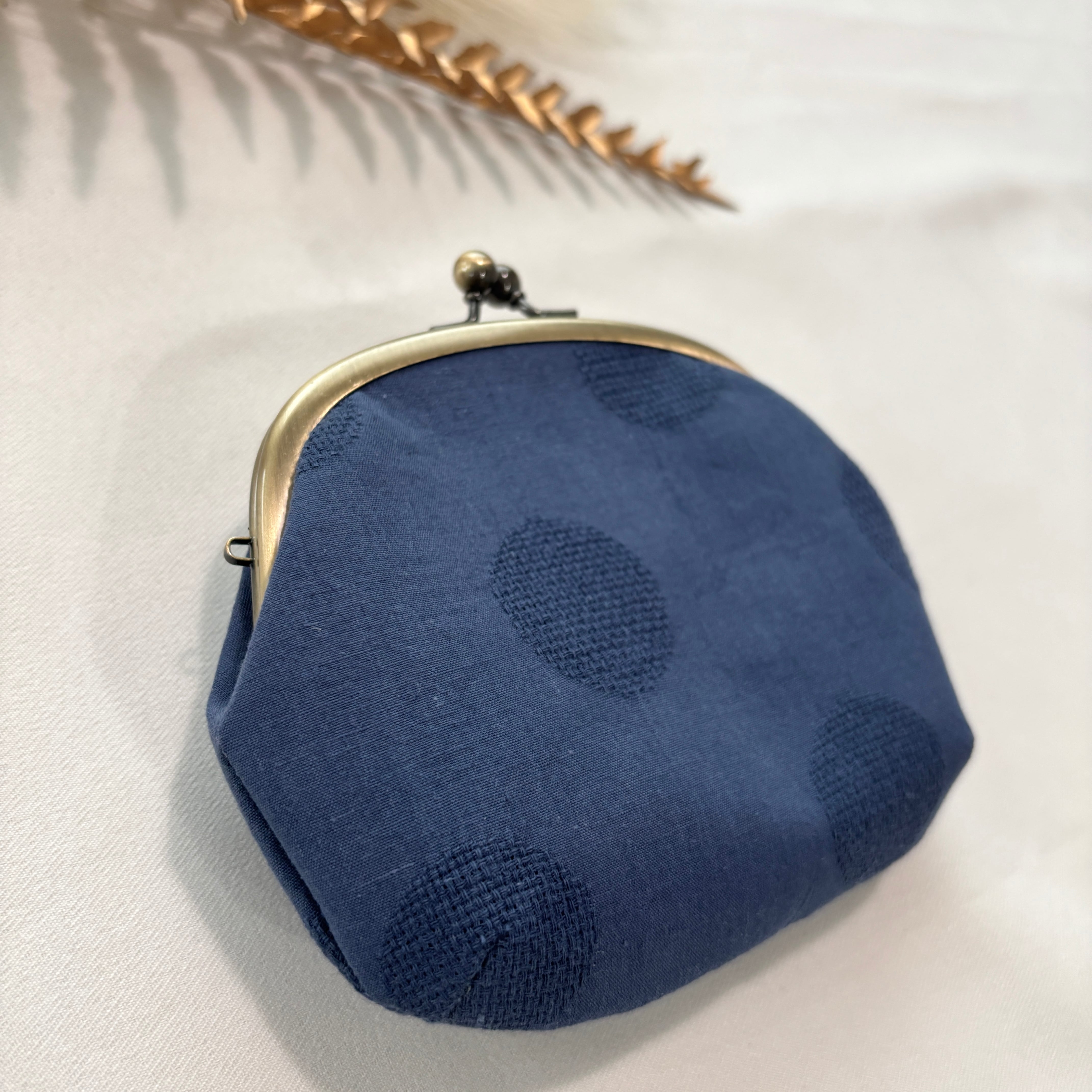 コットンリネンのがま口ポーチ ドット/ネイビー