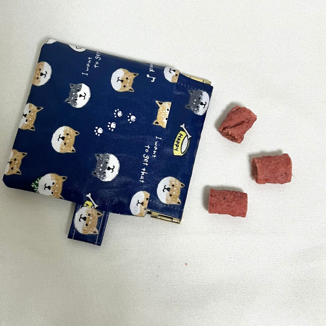 汚れに強いラミネート素材を使用しているので、愛犬のおやつ入れにもおすすめです。