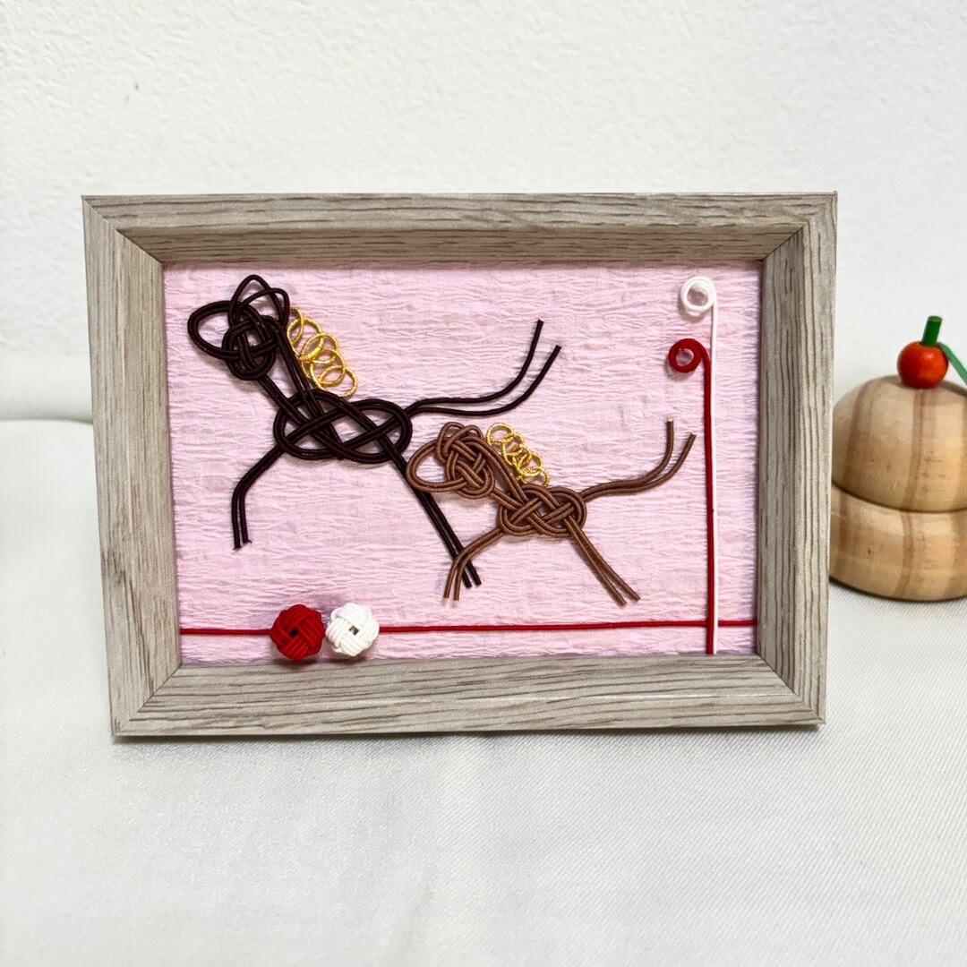 伝統的な水引の技法を用い、2026年の干支である「午(うま)」を瑞々しい感性で表現したインテリアフレームです。