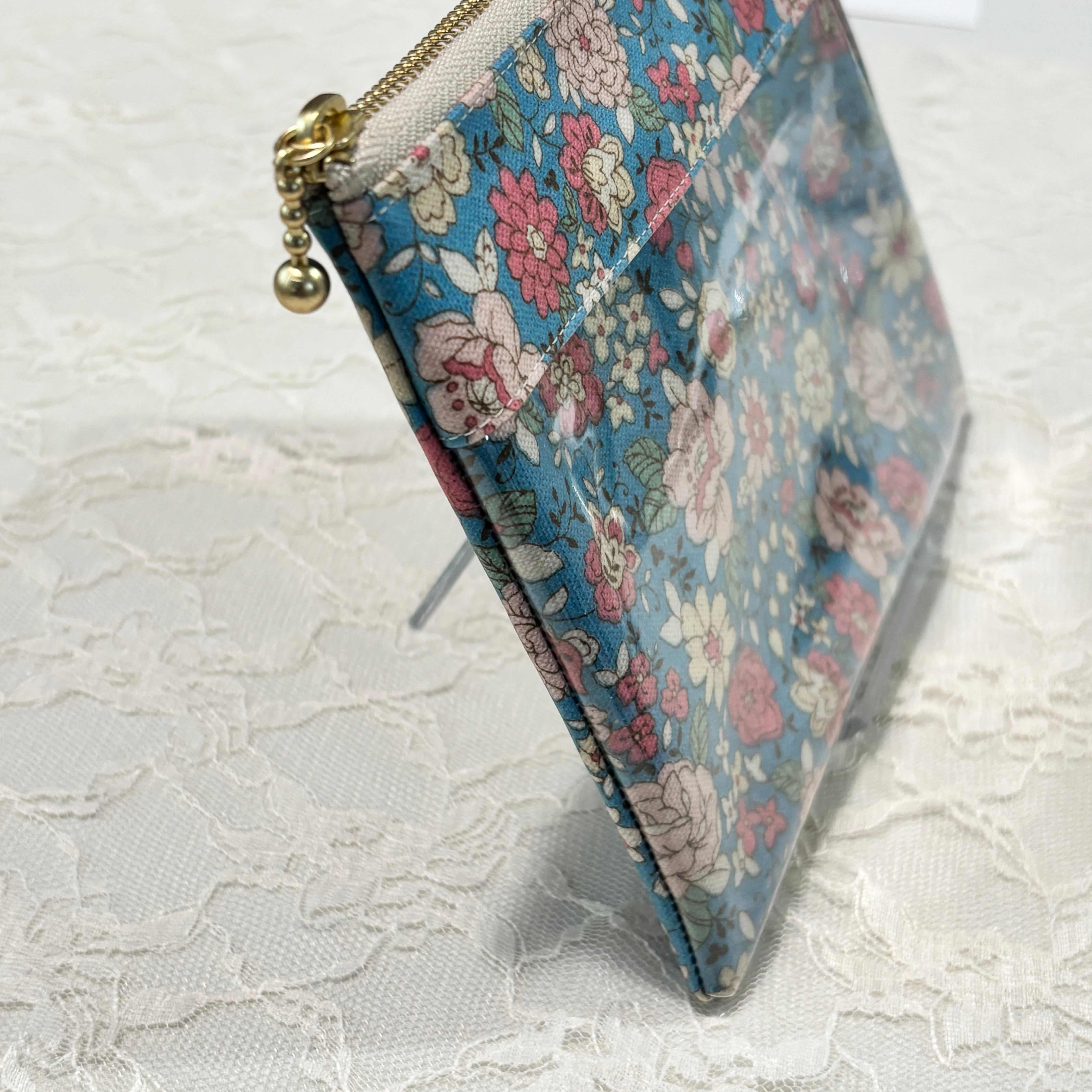 前面が透明な窓になっているので、中に入れるものによって表情が変わるのがこのポーチの楽しさ。