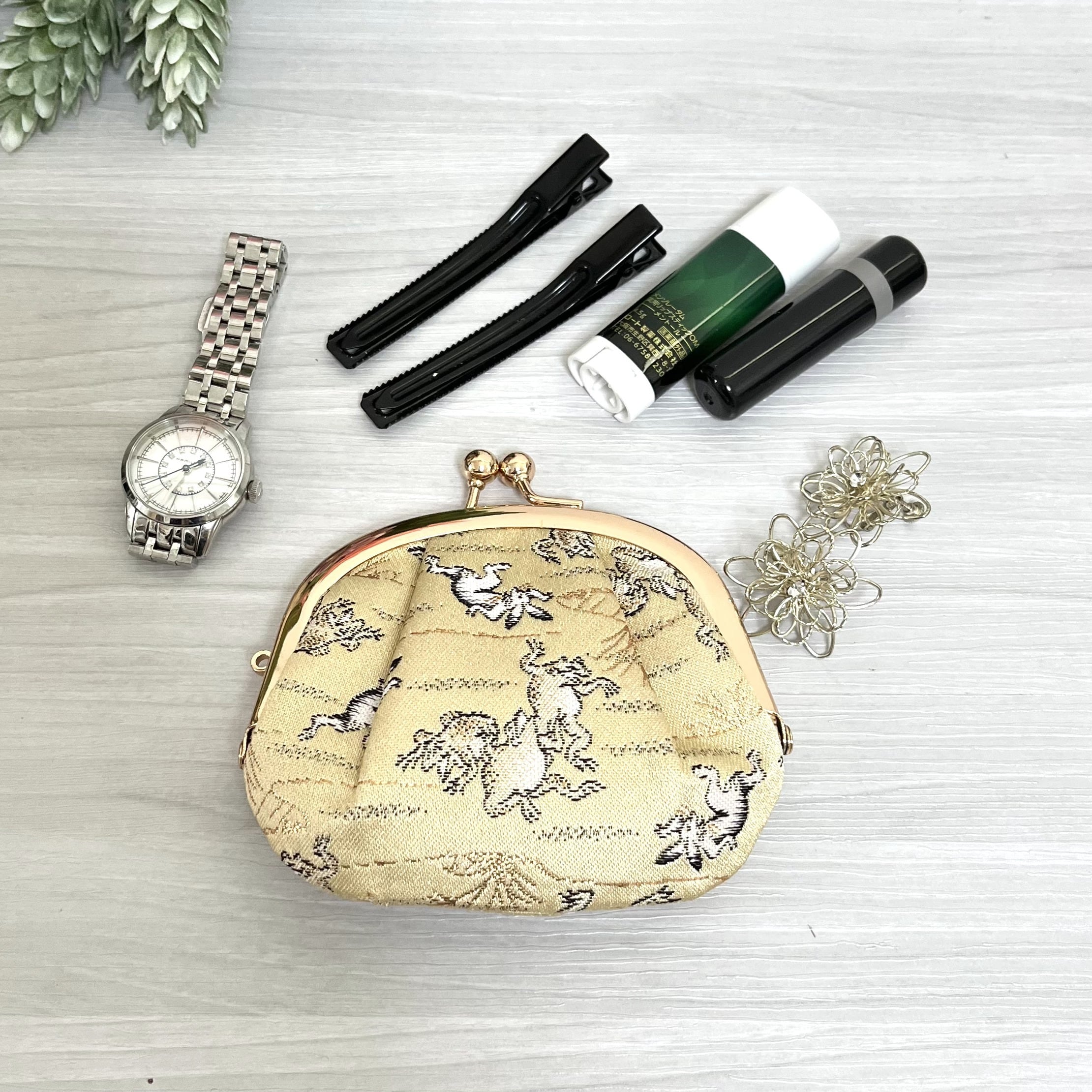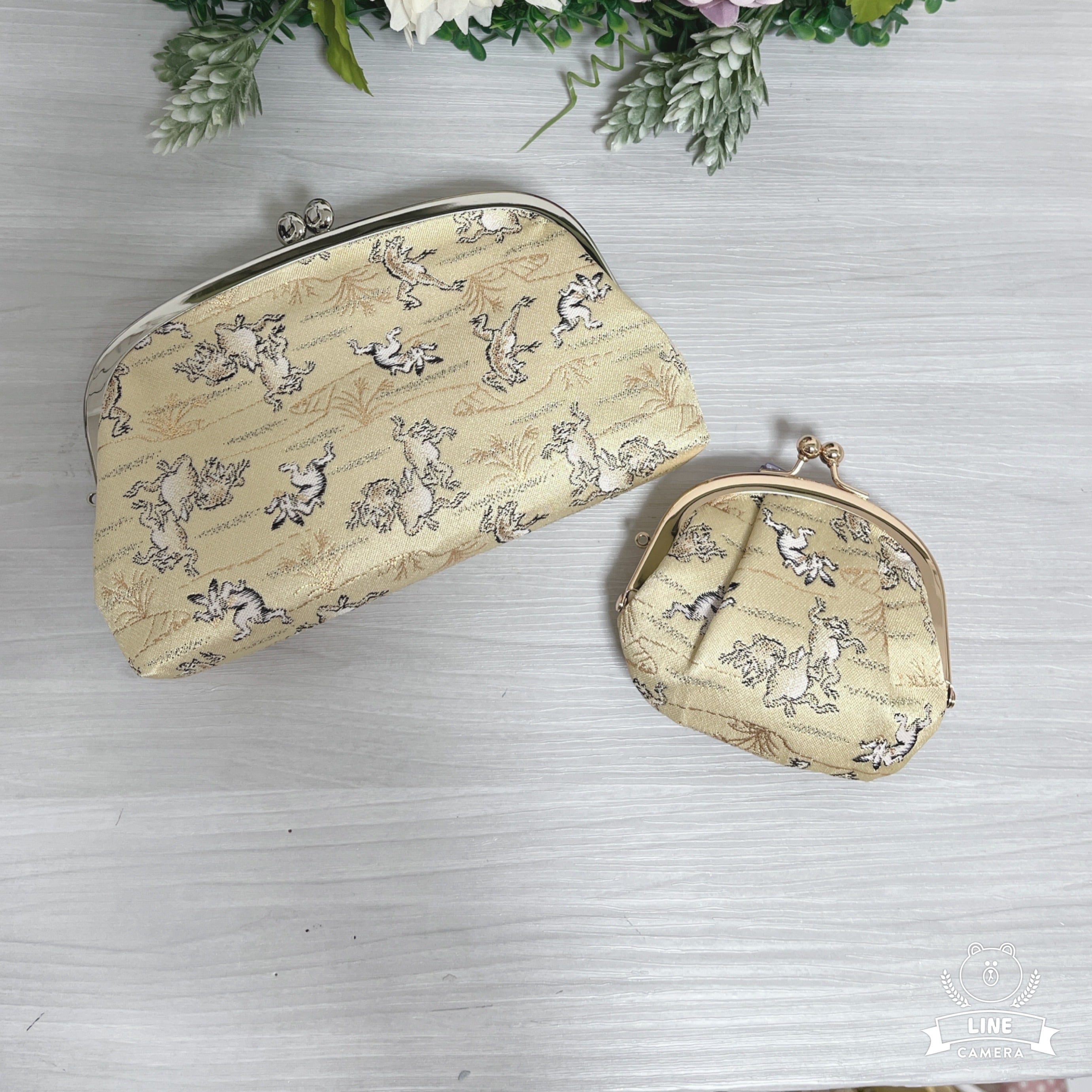 鳥獣戯画の絵柄が織り込まれた金襴生地を使用しています。