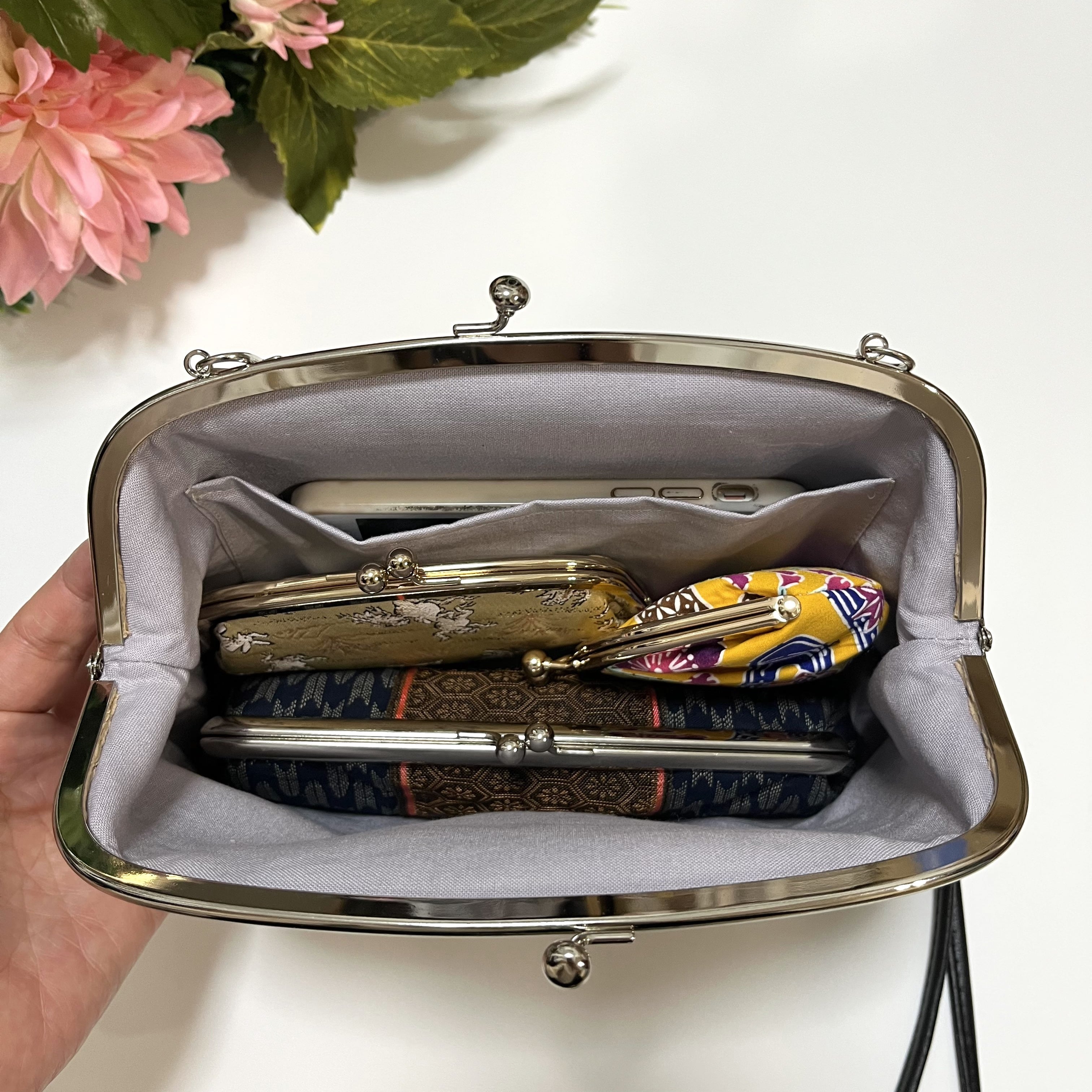 黒の帆布とシルバーの口金で、シックで落ち着いた雰囲気に仕上がりました。
