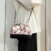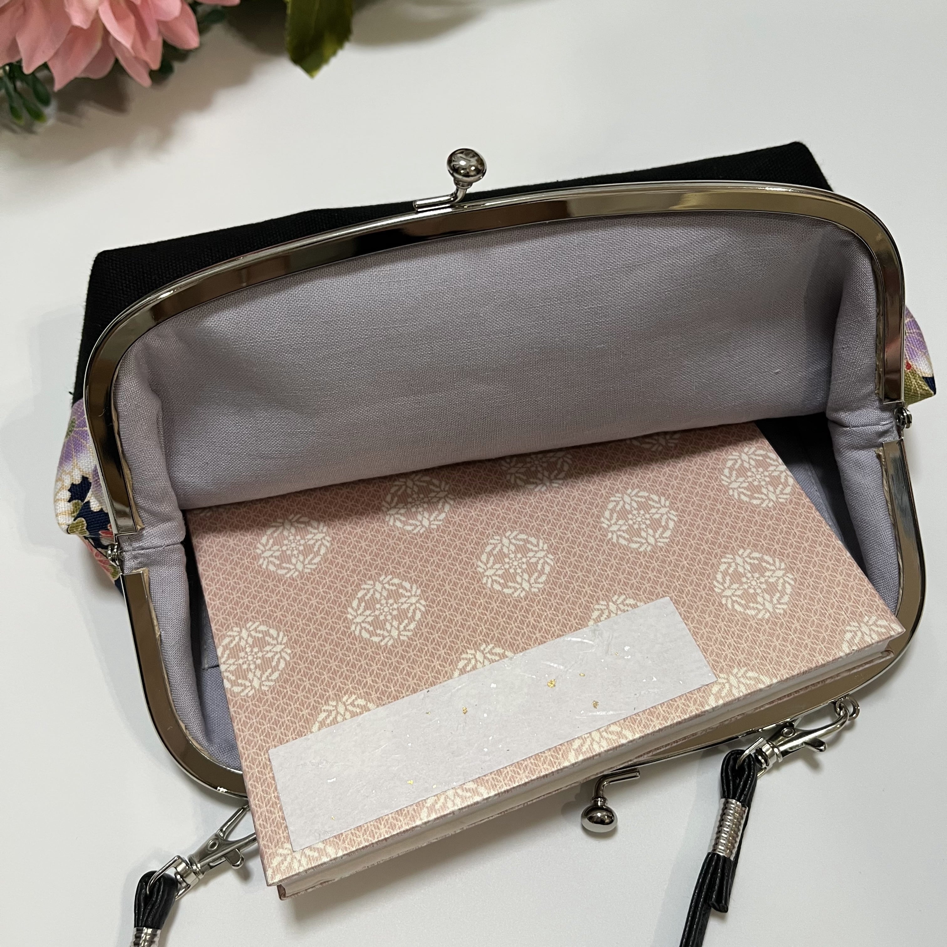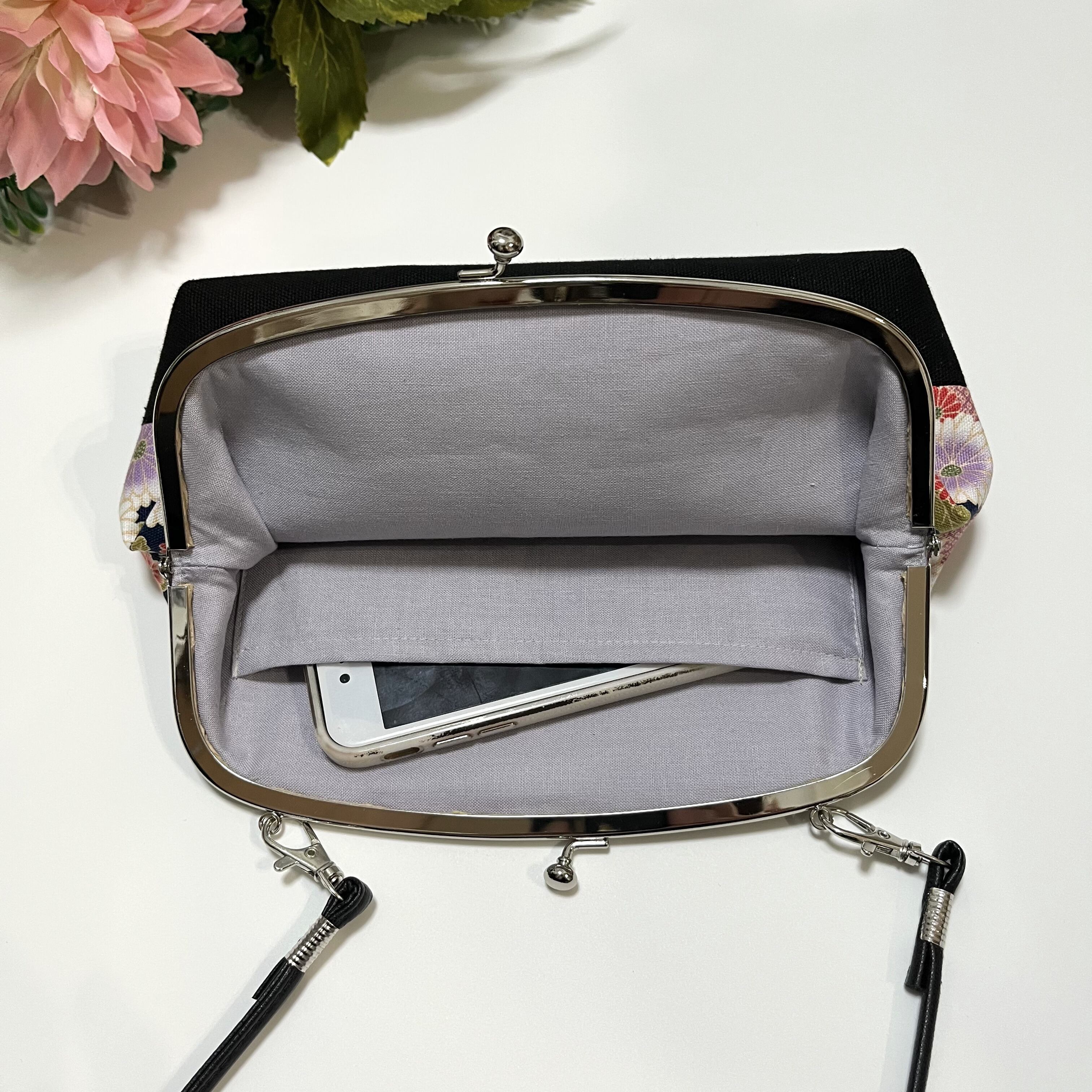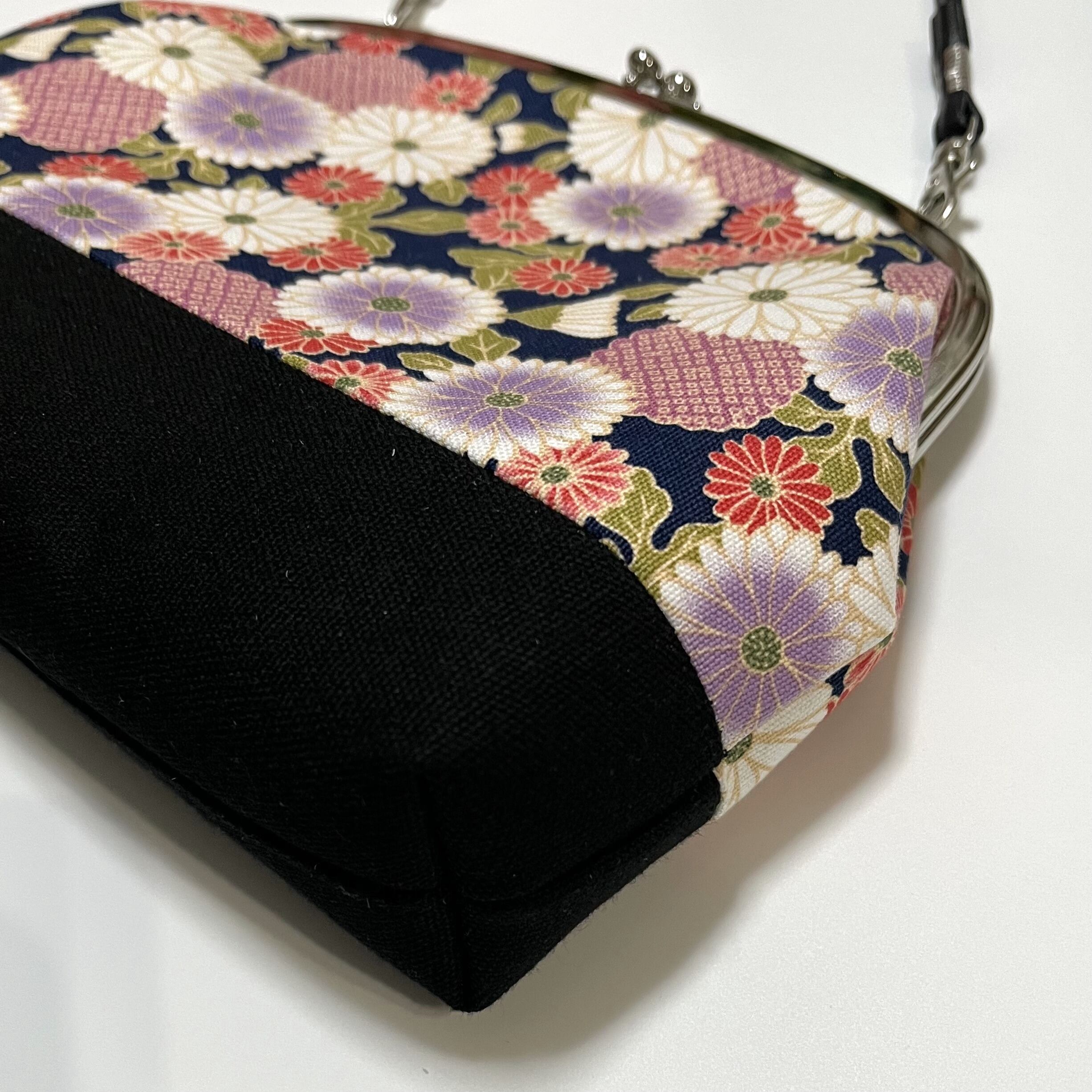 【wawaFAB】がま口ポシェット 帆布黒×菊 がま口ショルダーバック