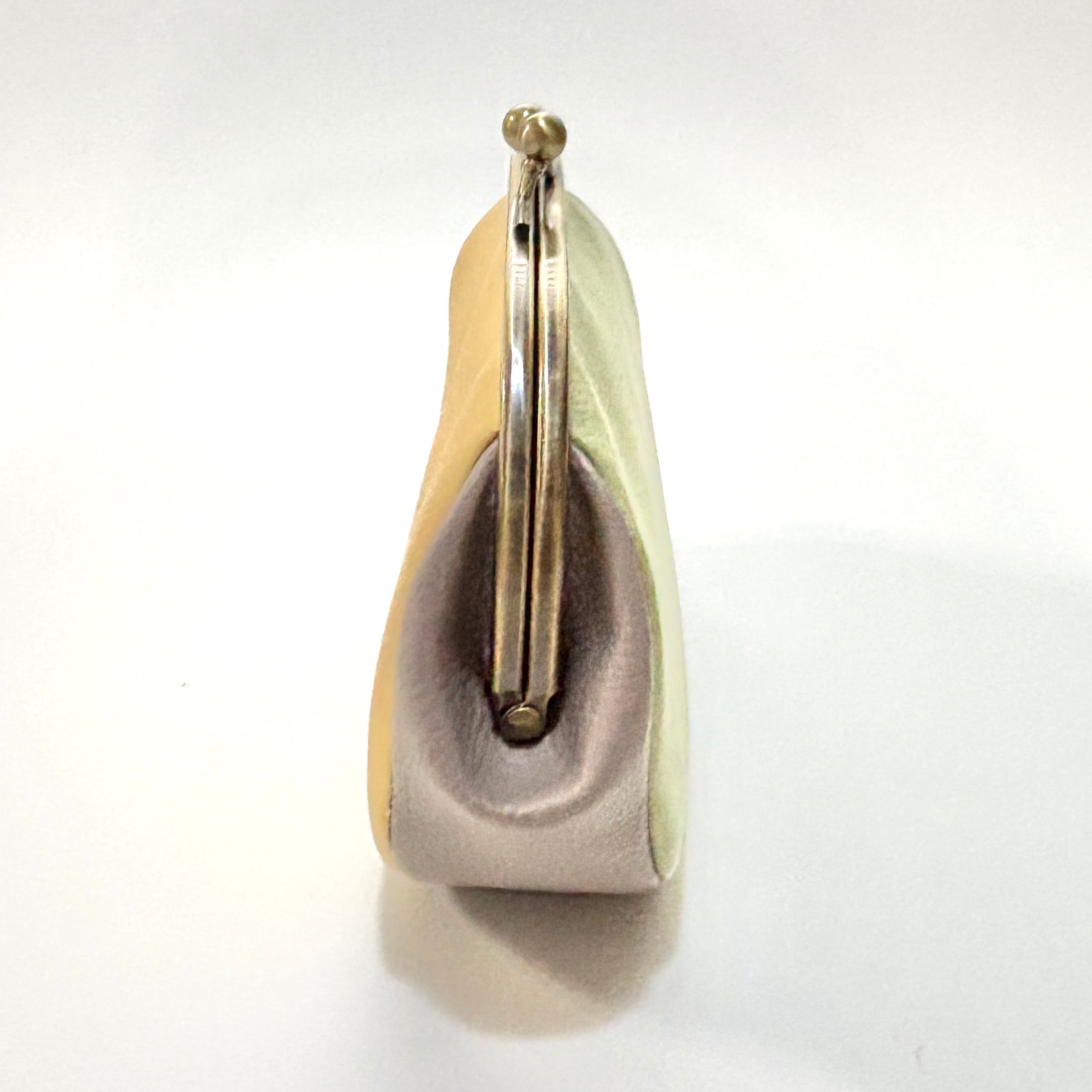 優しいニュアンスカラーが魅力的な3色使いのがま口ポーチです。