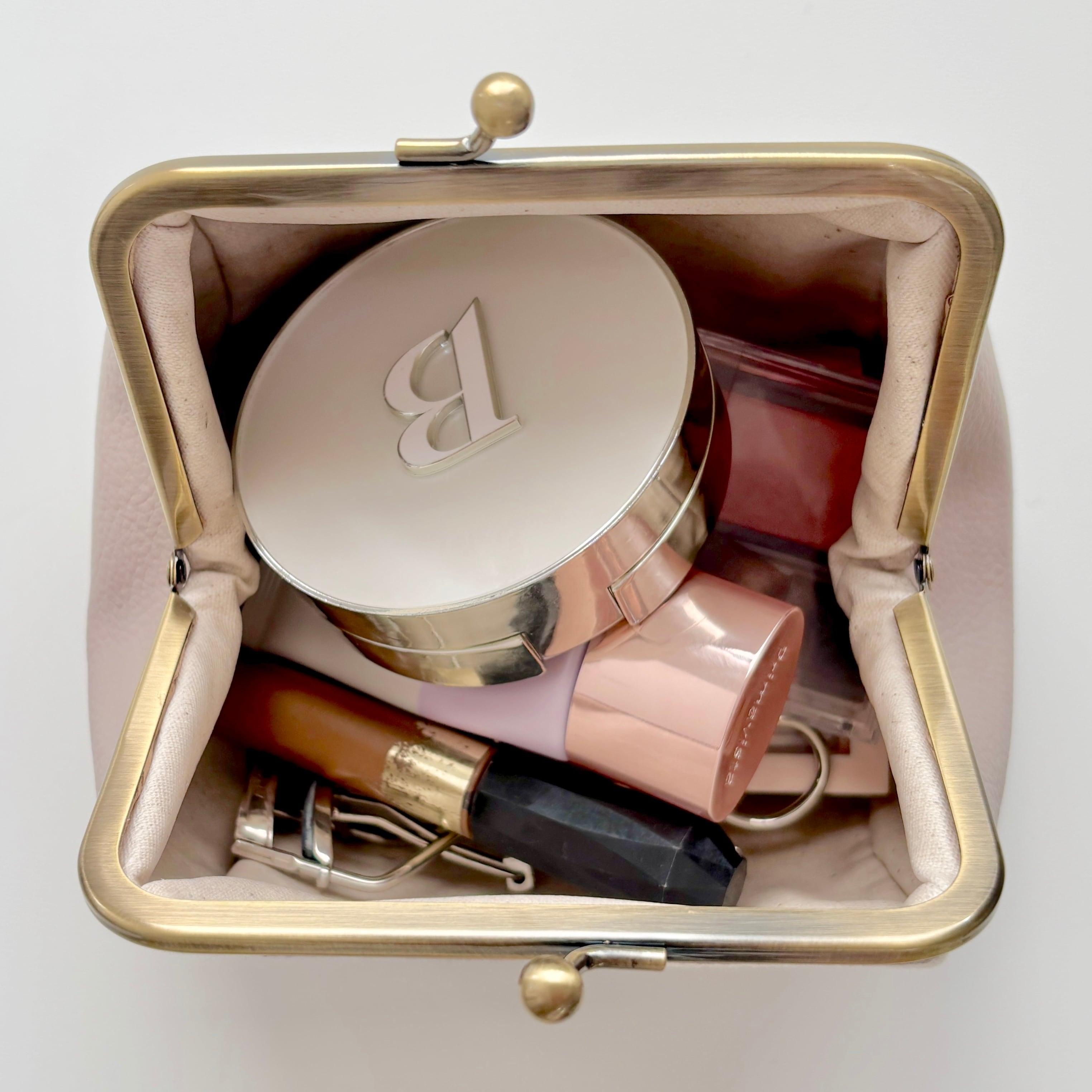 内側はラミネート生地を使っているので、汚れたら簡単に拭き取ることが出来るので、メイクポーチをしてもお勧めです。