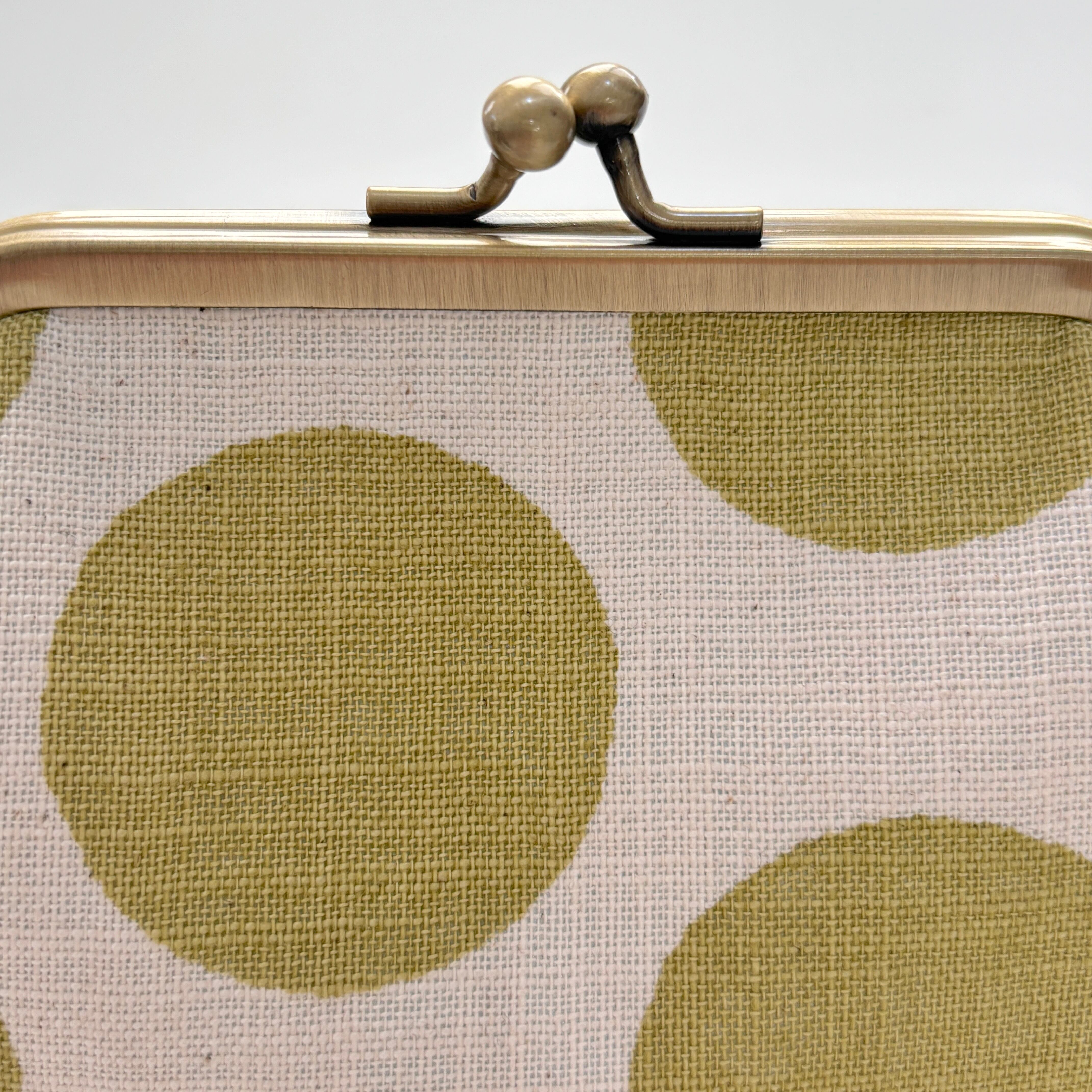 ぷっくりした立体的なフォルムが可愛いドット柄がま口ポーチです。