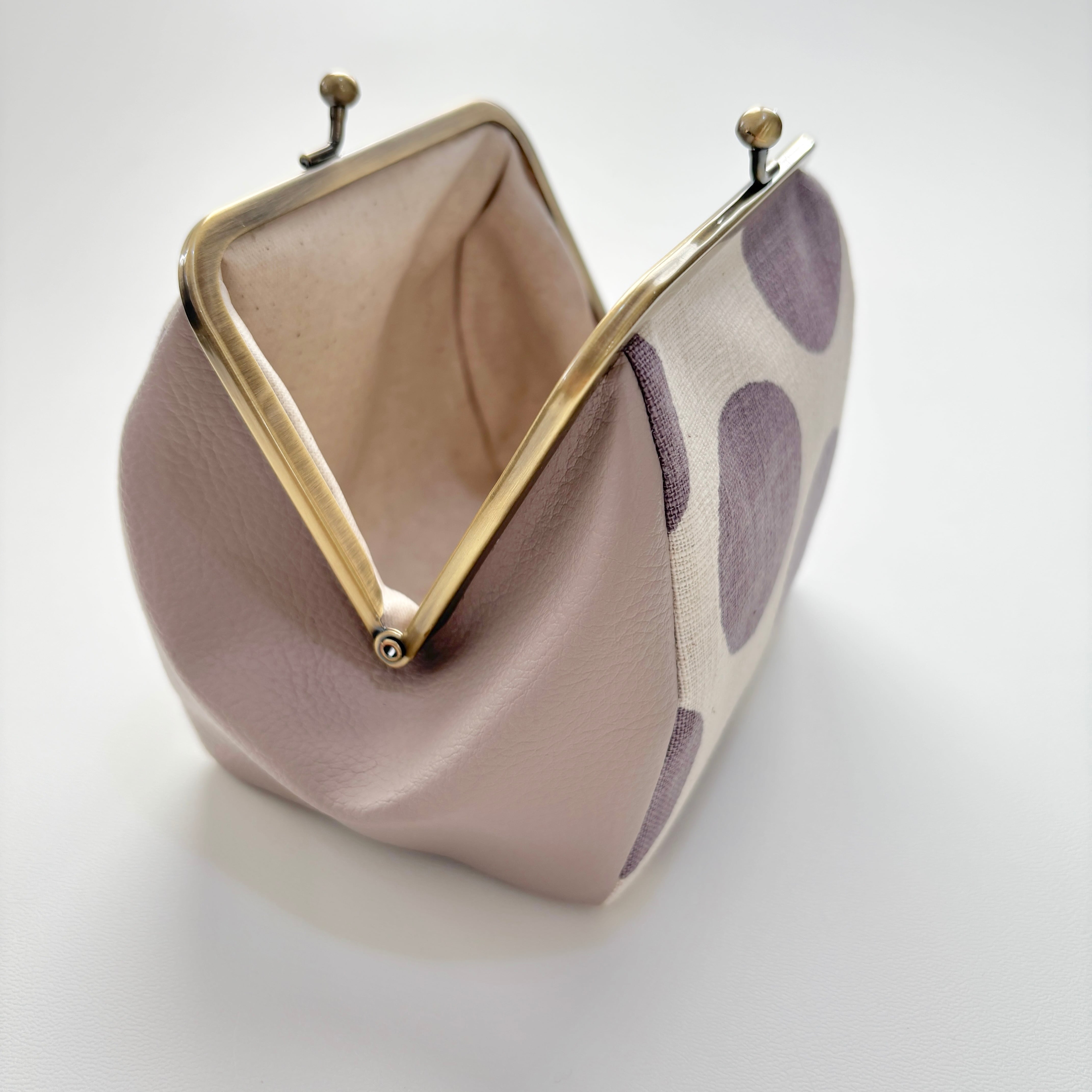 パープルの落ち着いたニュアンスカラーで、マチの部分には合皮を使っています。