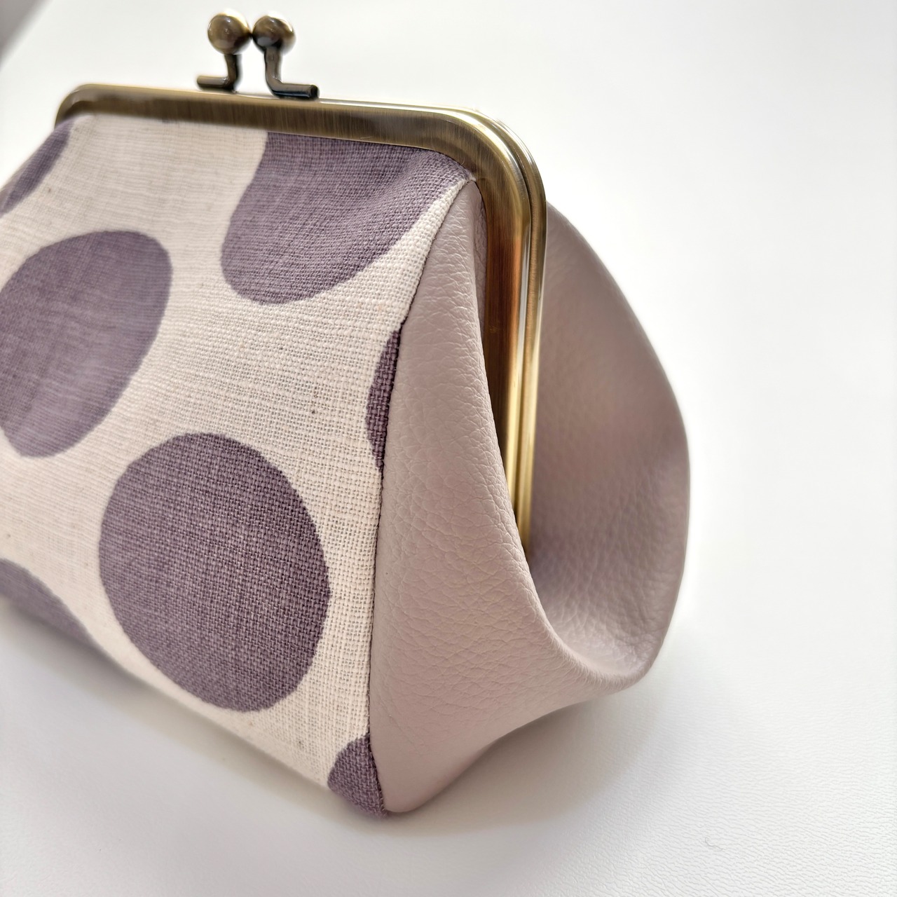 ぷっくりした立体的なフォルムが可愛いドット柄がま口ポーチです。