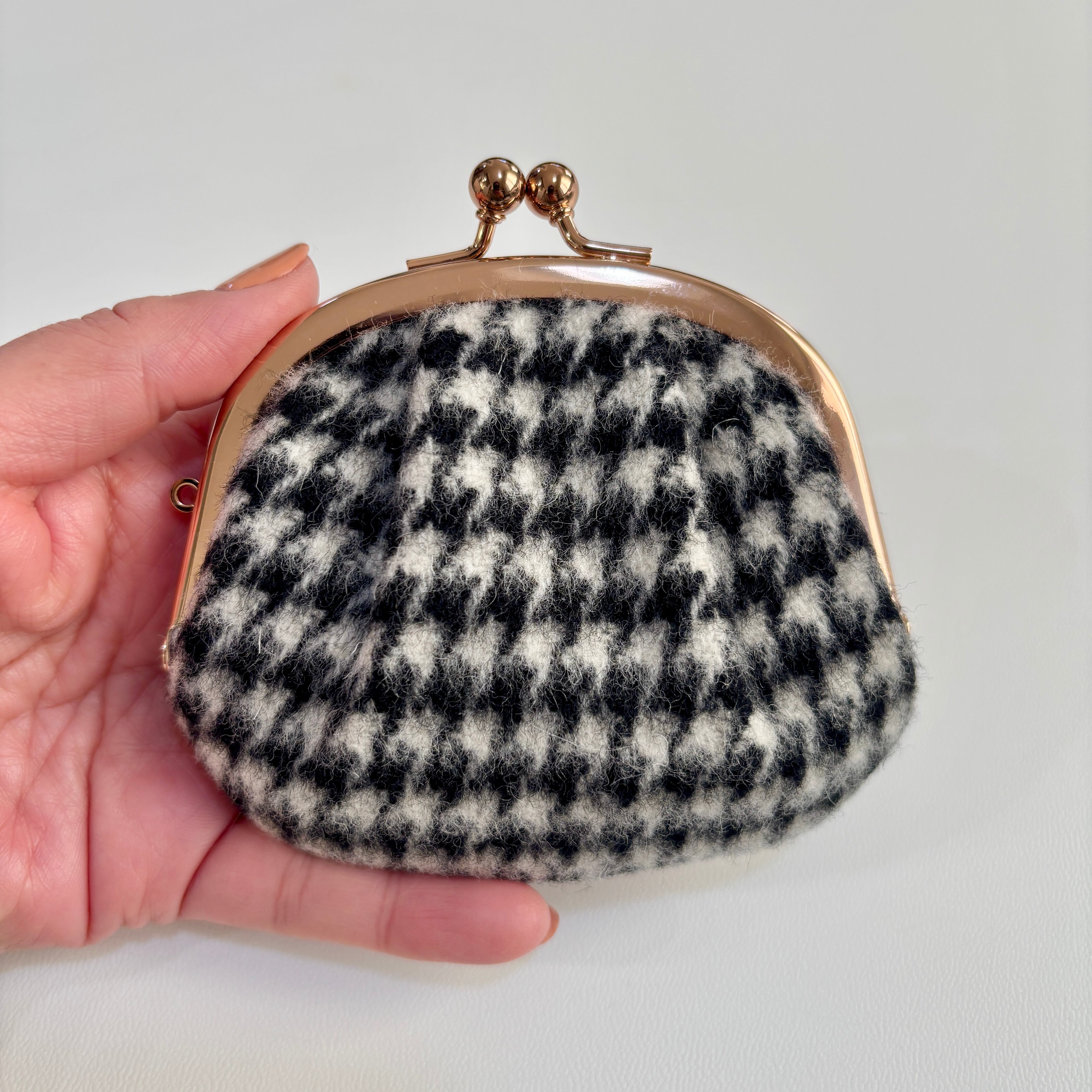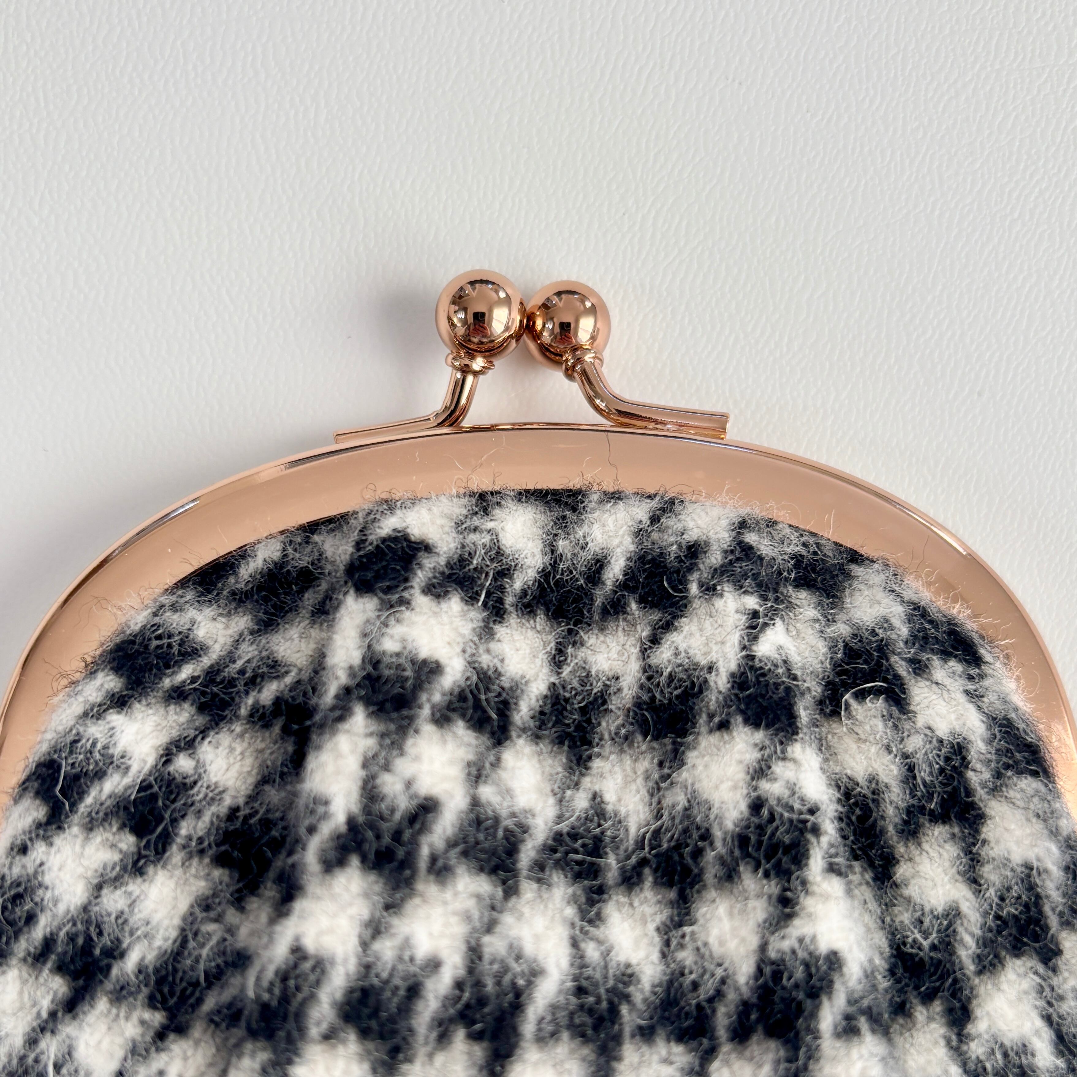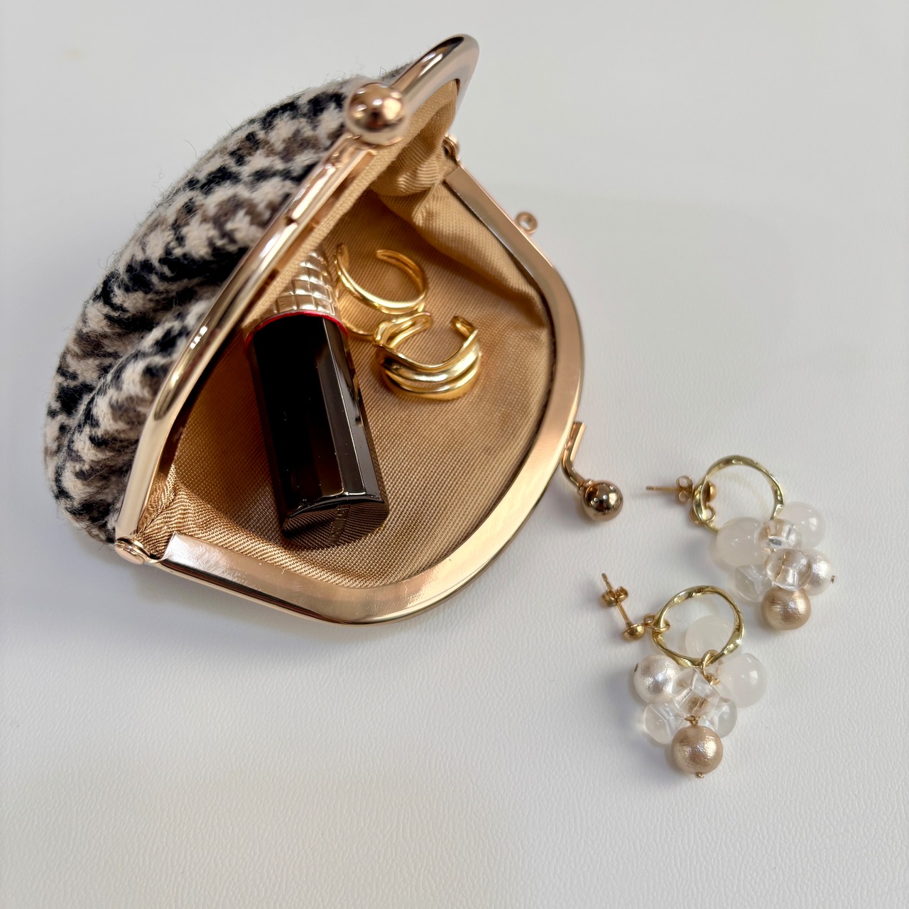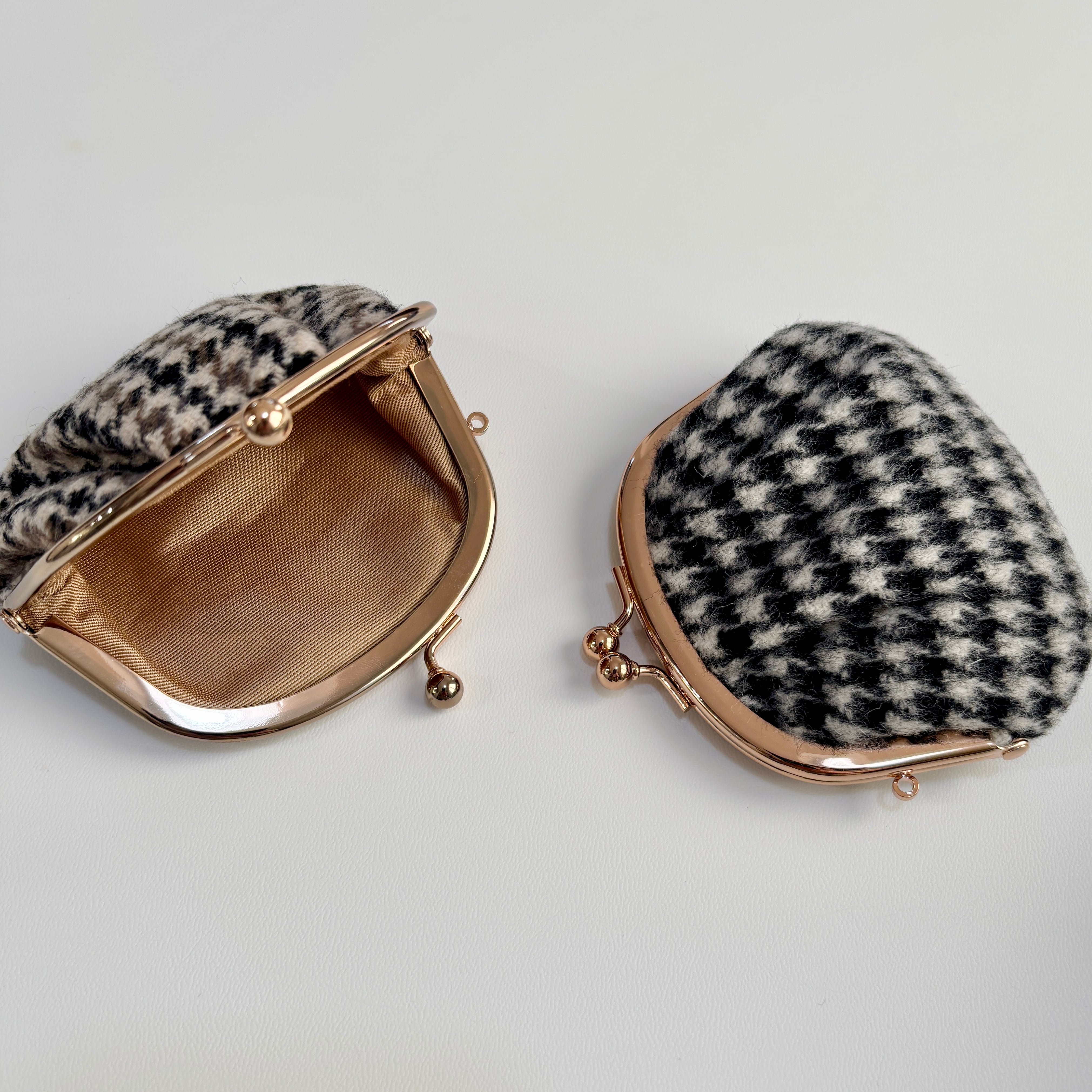 上品な千鳥格子のツイード生地を使用した、愛らしいがま口です。